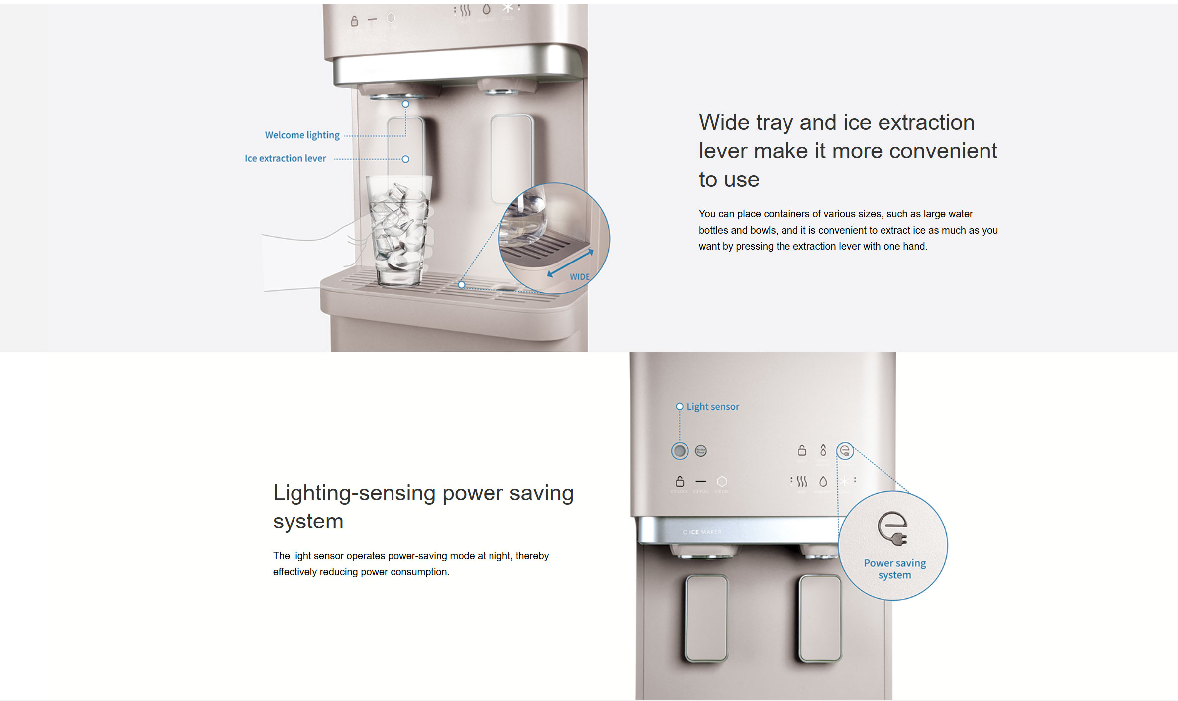 온수, 냉수, 정수, 얼음
