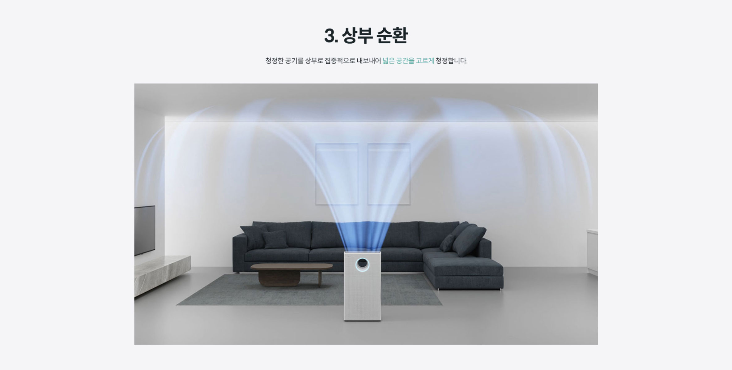 공기의 흐름을 사용 환경에 맞게 조절할 수 있어, 계절과 실내 구조에 따라 최적의 공기정화 효율을 얻을 수 있습니다.