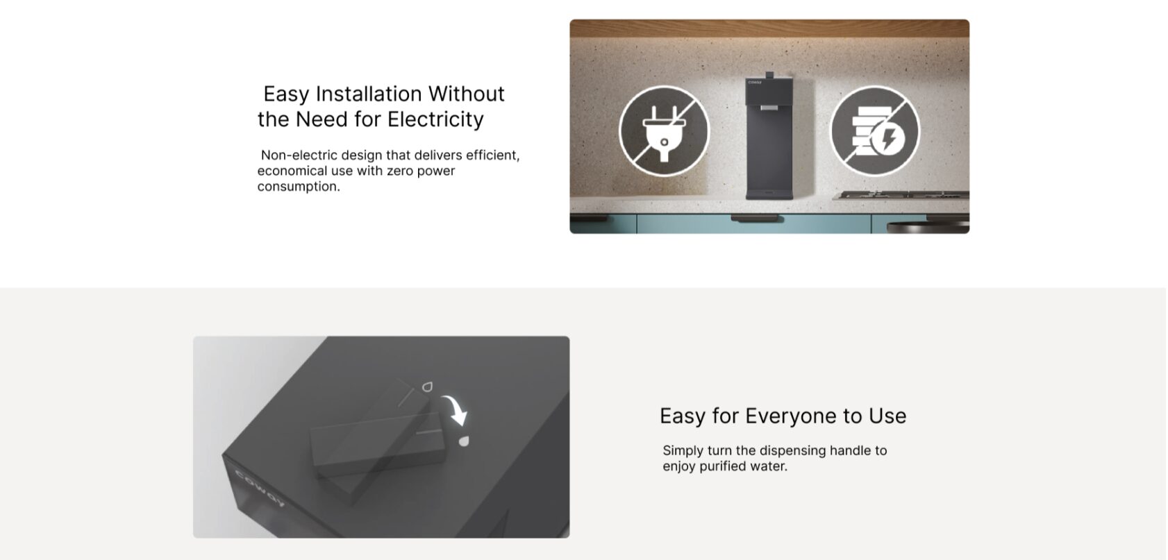 가로형/세로형 원하는 타입으로 공간 제한 없이 설치 가능한 카운터 탑 정수기