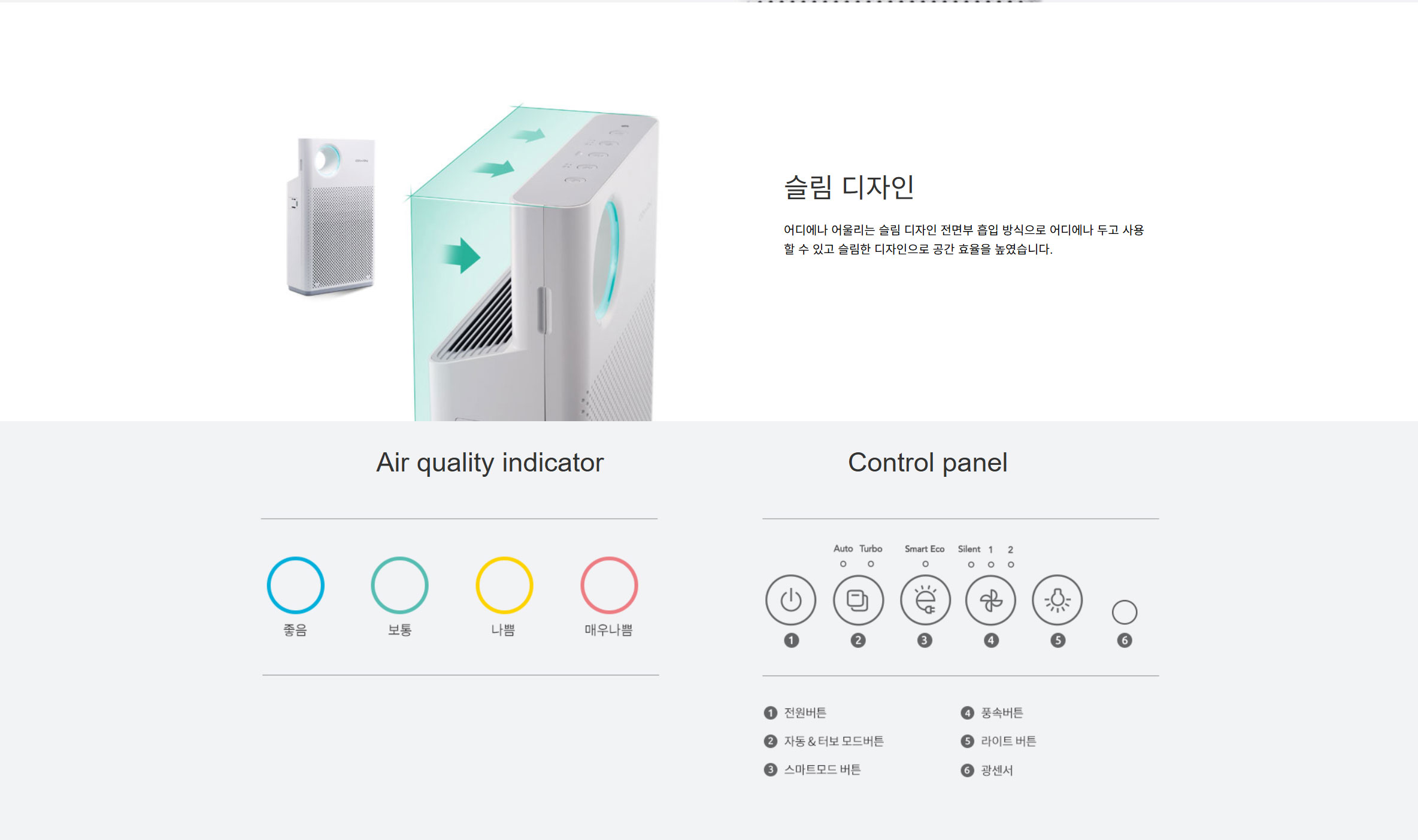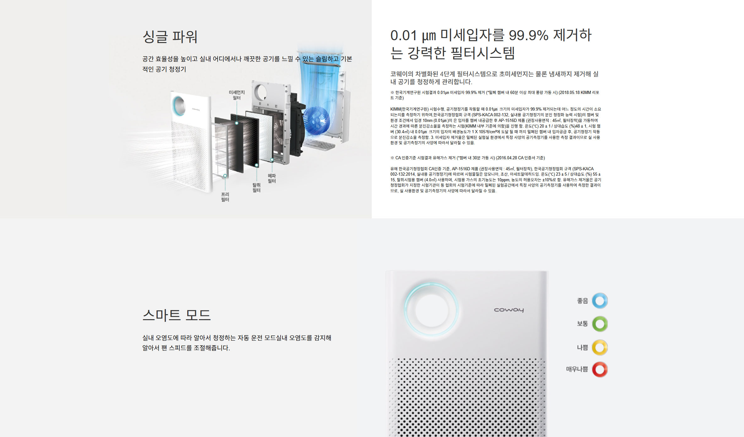 코웨이 슬림형 공기청정기 AP-1018F 주요 특징